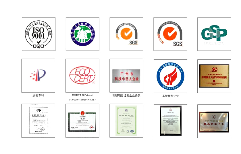 ●公司于2007年通過SGS公司的認(rèn)證,并獲得GMPC證書● ●公司于2009年榮獲廣州市高新技術(shù)企業(yè)協(xié)會(huì)會(huì)員單位 ●公司于2011年獲得廣州市花都食品藥物質(zhì)量管理協(xié)會(huì)第三屆名譽(yù)理事 ●公司于2011年獲得國家頒發(fā)的“高新技術(shù)企業(yè)”稱號(hào) ●公司于2012年獲得廣州市花都區(qū)安全生產(chǎn)管理技術(shù)研究協(xié)會(huì)理事單位 ●公司于2012年通過法國ECOCERT(天然及有機(jī)化妝品認(rèn)證)的認(rèn)證 ●公司于2012年榮批廣州市花都區(qū)科信局頒發(fā)的“綠色化妝品工程技術(shù)中心”項(xiàng)目 ●公司于2012年獲得廣州市花都區(qū)知識(shí)產(chǎn)權(quán)試點(diǎn)企業(yè)稱號(hào) ●公司于2012年成功簽訂廣東省科學(xué)技術(shù)廳4名科技特派委員 ●公司于2013年獲得廣州市花都區(qū)科學(xué)技術(shù)獎(jiǎng)三等獎(jiǎng) ●公司于2013年通過ISO14001(環(huán)境管理體系認(rèn)證證書),并獲得ISO0001證書 ●公司于2013年獲得2012年廣東省美容化妝品行業(yè)最具創(chuàng)新企業(yè) ●公司于2014年成功獲得科技小巨人資質(zhì) ●公司于2014年通過國家AAAA標(biāo)準(zhǔn)化良好行為認(rèn)證,并獲得標(biāo)準(zhǔn)化良好行為證書 ●公司于2015年成立省級(jí)工程技術(shù)中心,獲批成立院士專家企業(yè)工作站 ●公司于2016年分析檢測中心獲國家CNAS認(rèn)證 ●公司于2017年成功獲得中國化妝品“十佳制造商”稱號(hào),連續(xù)五年獲得“有機(jī)工廠”認(rèn)證 ●公司于2018年成功獲得中國化妝品供應(yīng)鏈百強(qiáng)企業(yè)稱號(hào) ●公司于2018年成功通過兩化融合管理評(píng)定,并獲得證書 ●公司于第24屆中國美容博覽會(huì)獲得“中國化妝品優(yōu)秀供應(yīng)商” ●公司于2019年榮獲全球美妝供應(yīng)鏈權(quán)威大獎(jiǎng)——2019 COSMETECH OEM/ODM獎(jiǎng) |
