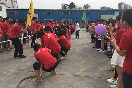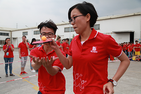 第二輪:協(xié)作接力賽,分鏈接加速、袋鼠跳、平衡乒乓球過障礙和無敵風火輪4個接力小環(huán)節(jié)。一聲令下,參賽員工魚貫而出。場上,你追我趕、奮力拼搏;場下,加油聲、吶喊聲此起彼伏。這項活動不只讓員工們的身心得到放松,還令他們的團隊協(xié)作力、集體榮譽感得到前所未有的提高。