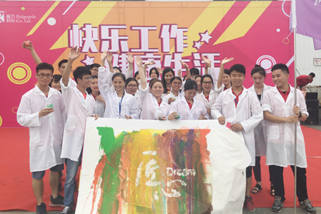 緊跟其后出場的是由技術(shù)工程師們組成的“匠心隊”,整齊的白大褂和盛裝各色“原料”的燒杯,無一不彰顯著棟方股份技術(shù)研究團隊“精于研究、專于品質(zhì)”的匠心精神。相信在他們的“匠心協(xié)力”下,未來棟方“必創(chuàng)佳績”。