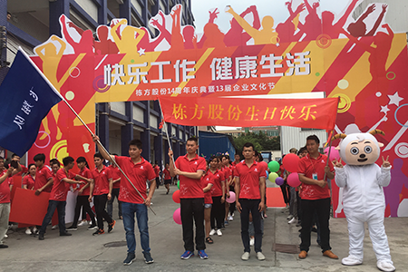 ?6月伊始,晴,整潔開闊的籃球場上,不時吹來習習微風。全體棟方人齊聚于此,心潮澎湃、期盼滿懷,靜候著一場盛會的到來。下午3:00,以“快樂工作,健康生活”為主題的棟方股份第十三屆企業(yè)文化節(jié)暨十四周年廠慶,在精彩紛呈的“Cosplay”大型創(chuàng)意入場儀式中正式拉開序幕。