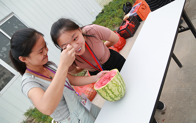 最后,是精彩紛呈的猜燈謎環(huán)節(jié)和妙趣橫生的“吃西瓜”和“喝可樂(lè)”比賽游戲環(huán)節(jié)。