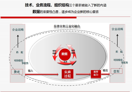 兩化融合,即工業(yè)化與信息化的深度融合,是一項(xiàng)國家戰(zhàn)略決策。通過在企業(yè)內(nèi)部推行并建立一套管理體系,形成企業(yè)長期推動(dòng)兩化融合的內(nèi)在機(jī)制。輔助企業(yè)理清業(yè)務(wù)模式和業(yè)務(wù)流程,消除內(nèi)部管理阻力;以制度創(chuàng)新保障技術(shù)創(chuàng)新、商業(yè)模式創(chuàng)新,形成良性循環(huán)。在操作層面體現(xiàn)為不斷推進(jìn)數(shù)據(jù)、技術(shù)、業(yè)務(wù)流程、組織結(jié)構(gòu)四個(gè)基本要素互動(dòng)創(chuàng)新和持續(xù)優(yōu)化的過程!