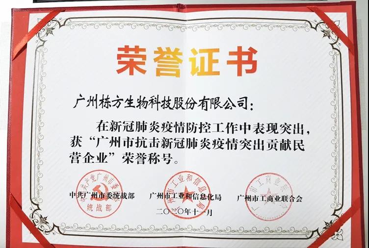 “廣州市抗擊新冠肺炎疫情突出貢獻(xiàn)民營(yíng)企業(yè)”榮譽(yù)證書,重點(diǎn)表揚(yáng)了棟方股份在防疫中展現(xiàn)出大企業(yè)的社會(huì)責(zé)任感和擔(dān)當(dāng)精神。