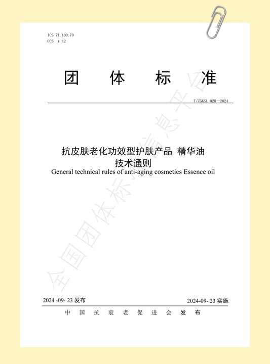 標準引領丨國內(nèi)首個《抗皮膚老化功效型護膚產(chǎn)品精華油技術(shù)通則》團體標準正式發(fā)布
