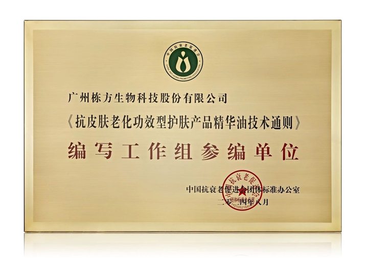 為助力抗皮膚老化護膚產(chǎn)品行業(yè)更好的發(fā)展,由上海林清軒生物科技有限公司牽頭組織,廣州棟方生物科技股份有限公司、上海交通大學等高校院所與企業(yè)共同參與制定《抗皮膚老化功效型護膚產(chǎn)品精華油技術(shù)通則》團體標準。